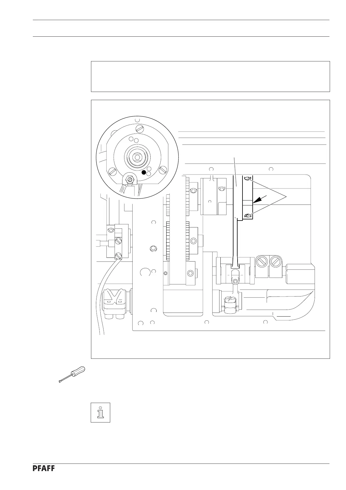 feed lever pressed (The notch in feed eccentric 1 must be visible).