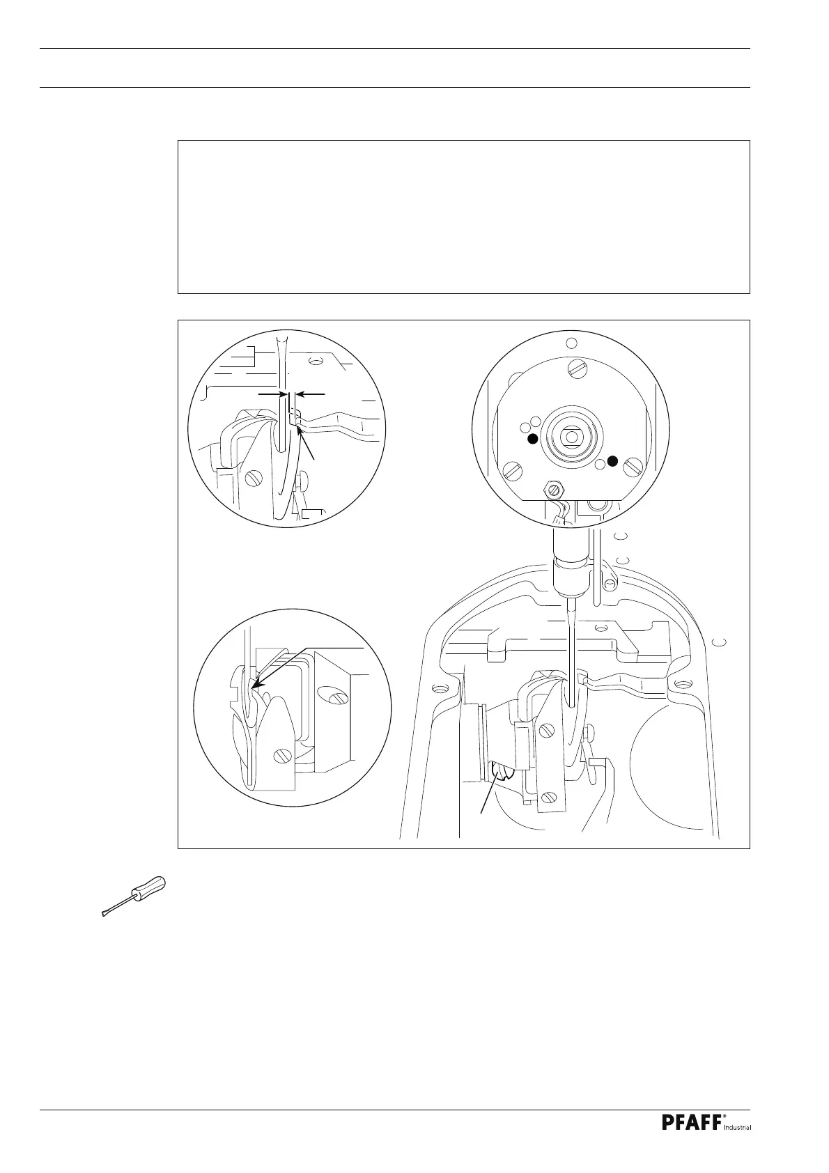 the distance between the needle and the hook point must be 0.05 - 0.1 mm.