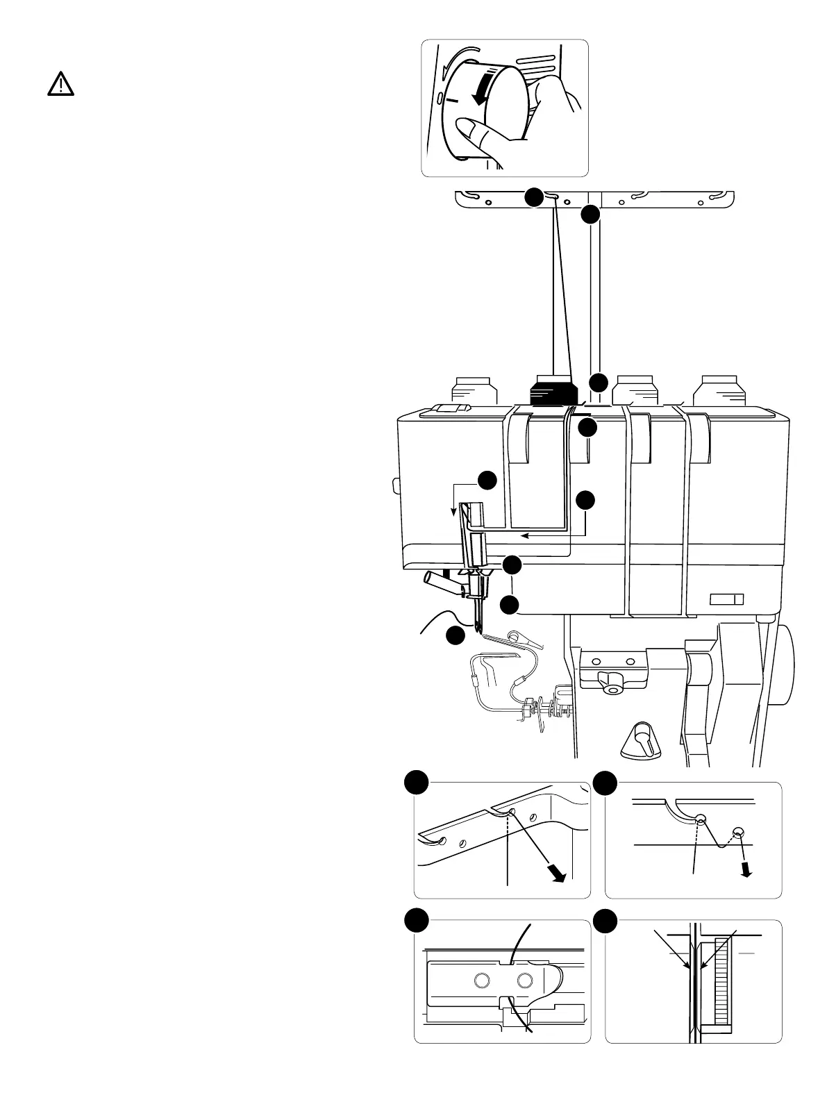 Note: Raise the presser foot lifter for easier threading. Raise the