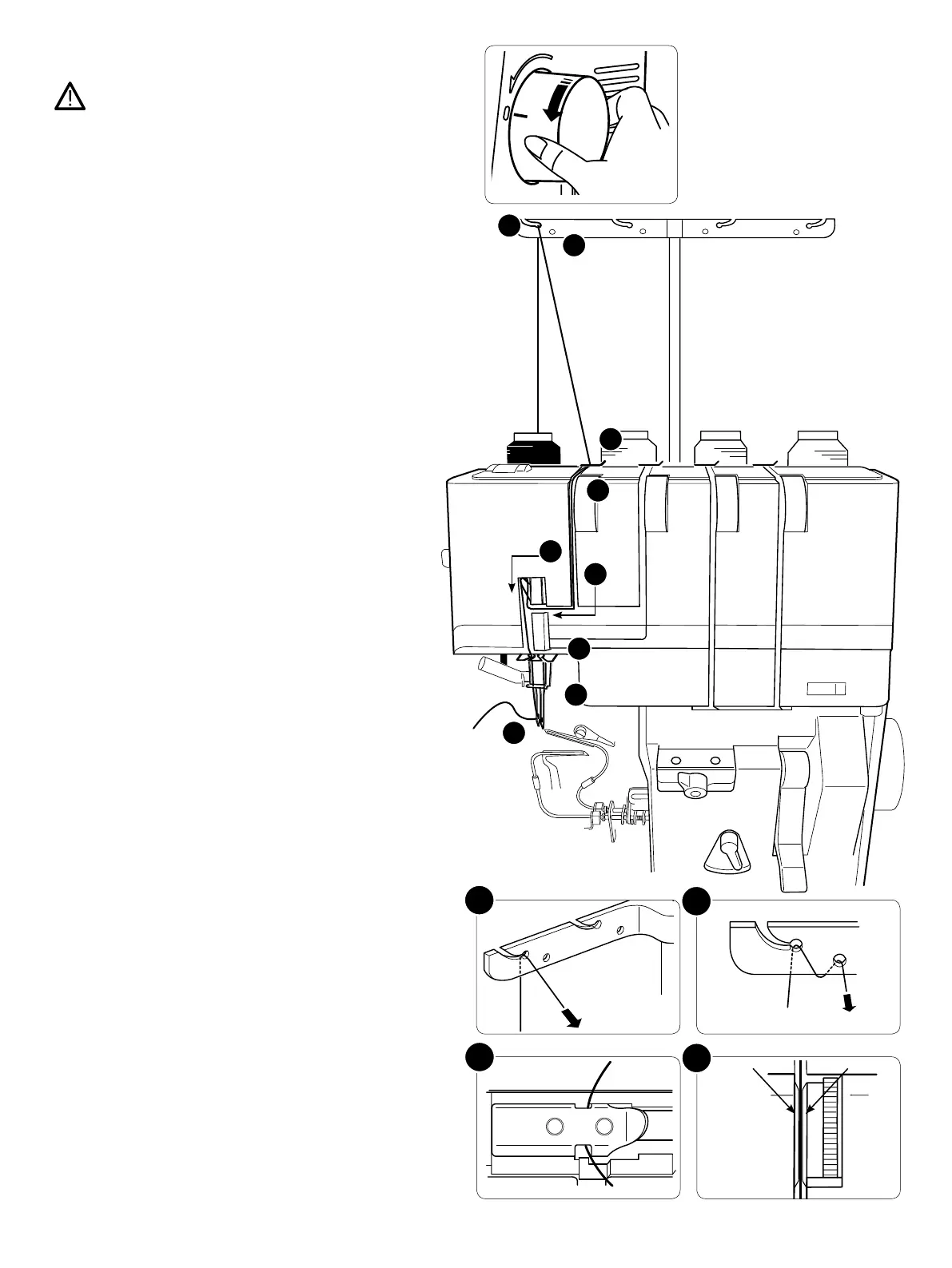 Note: Raise the presser foot lifter for easier threading. Raise the