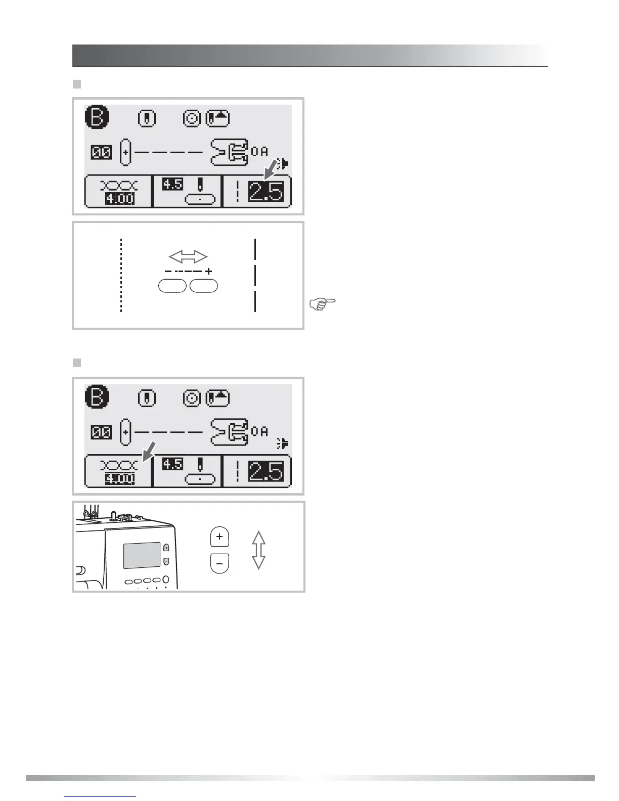 pressing the stitch length adjustment buttons.