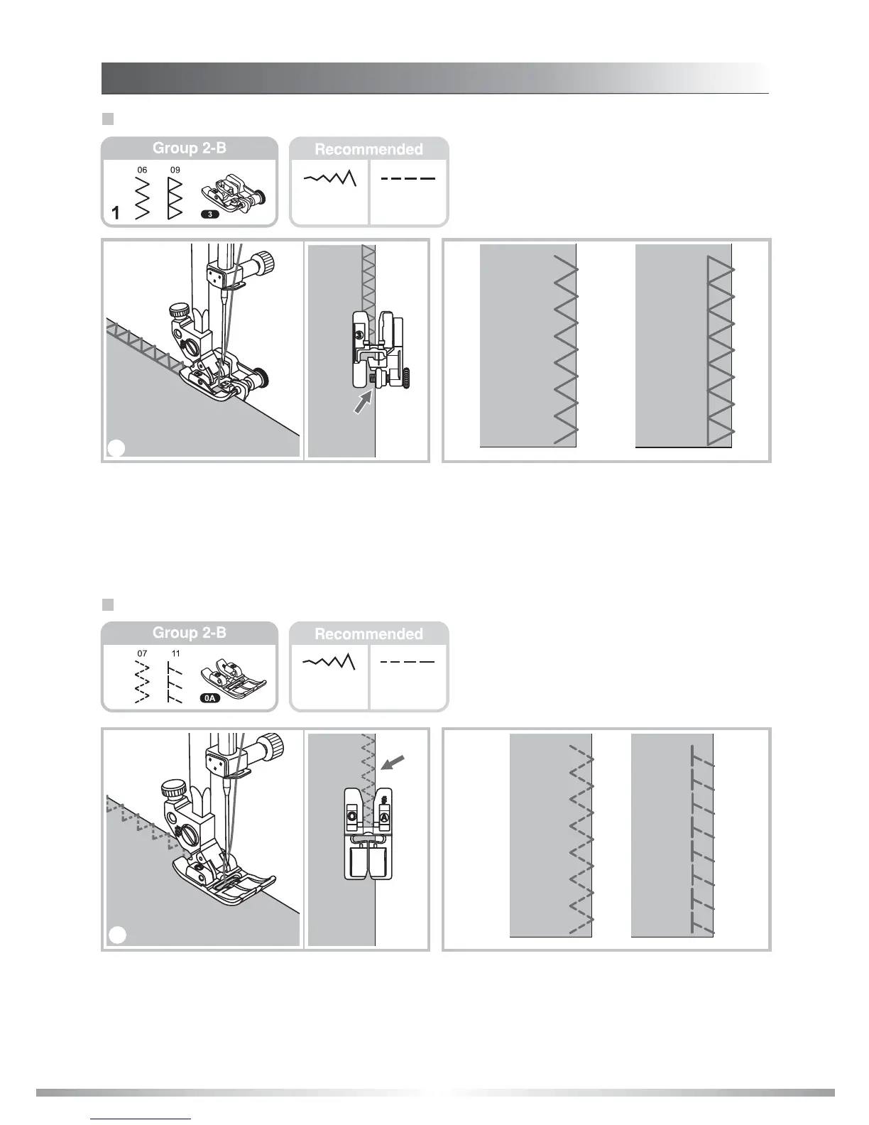1. Change the presser foot to the blindhem foot.