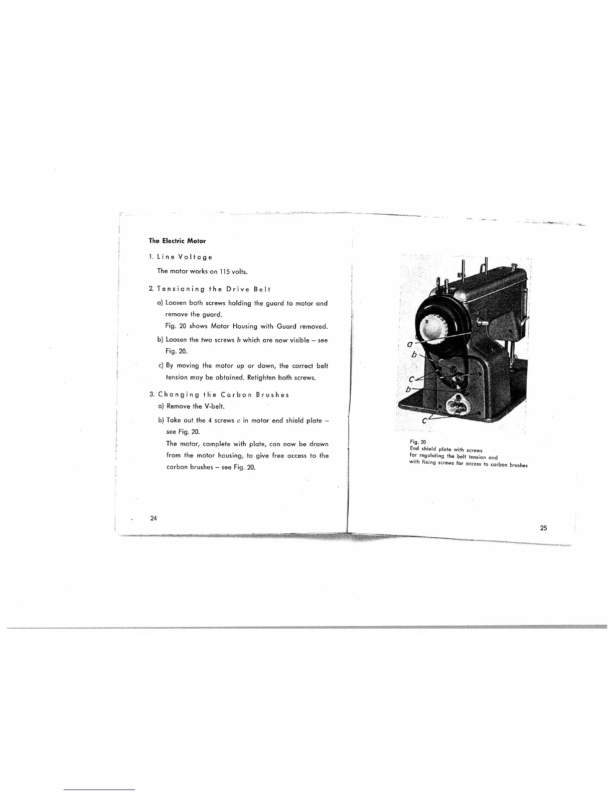 Pfaff CALANDA 132 - The Electric Motor; Tensioning the Drive Belt