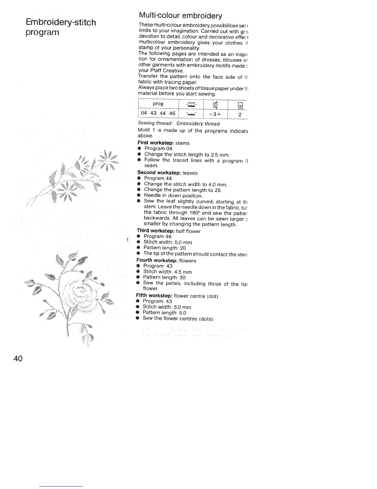 Pfaff Creative 1467A - Multi-colour Embroidery; First Workstep: Stems; Second Workstep: Leaves; Third Workstep: Half Flower