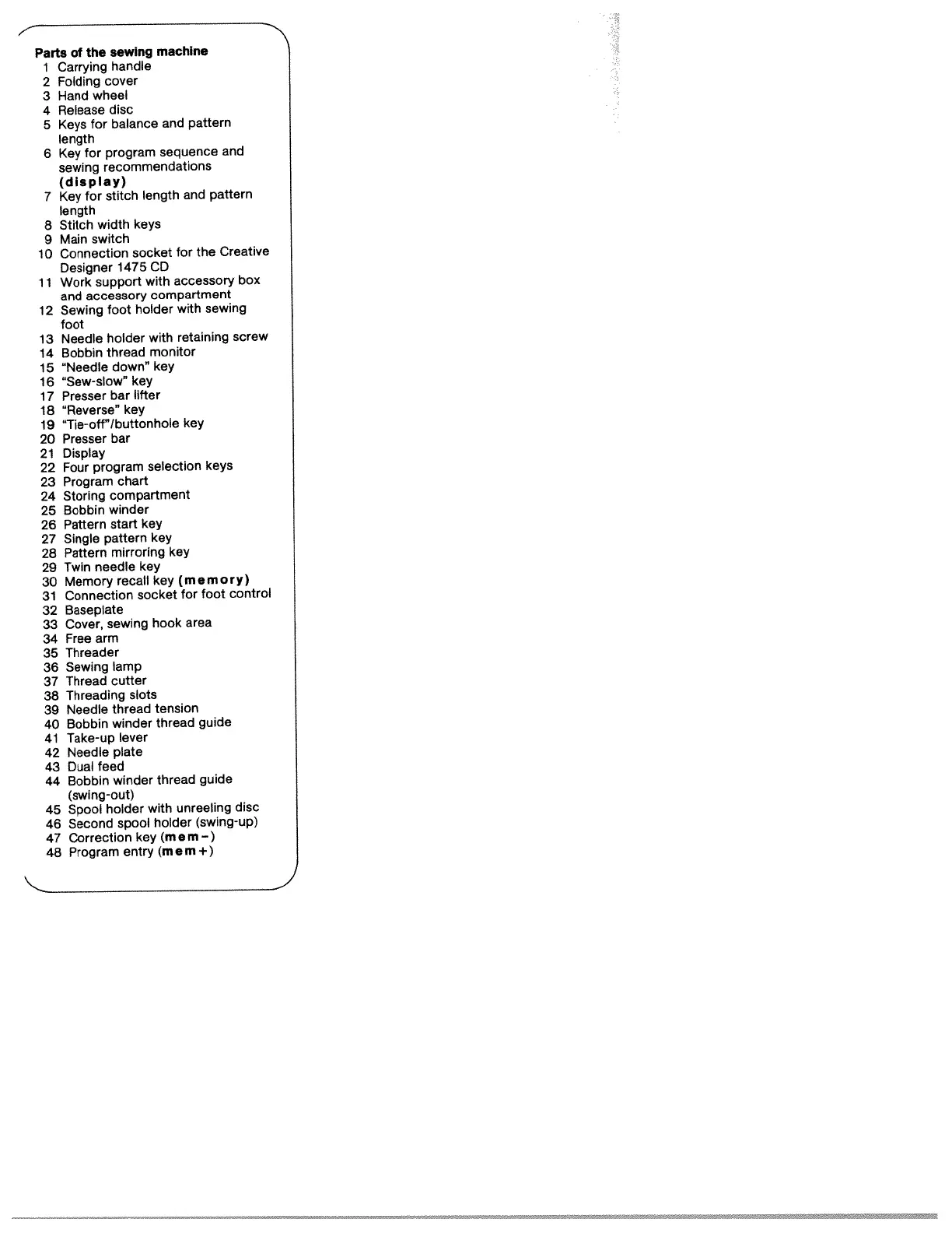 Pfaff creative 1475CD - Parts of the Sewing Machine
