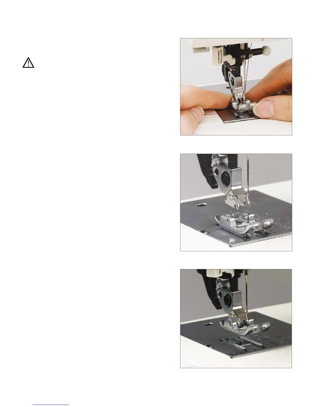 when the presser foot lifter (37) is lowered, the pins of the foot