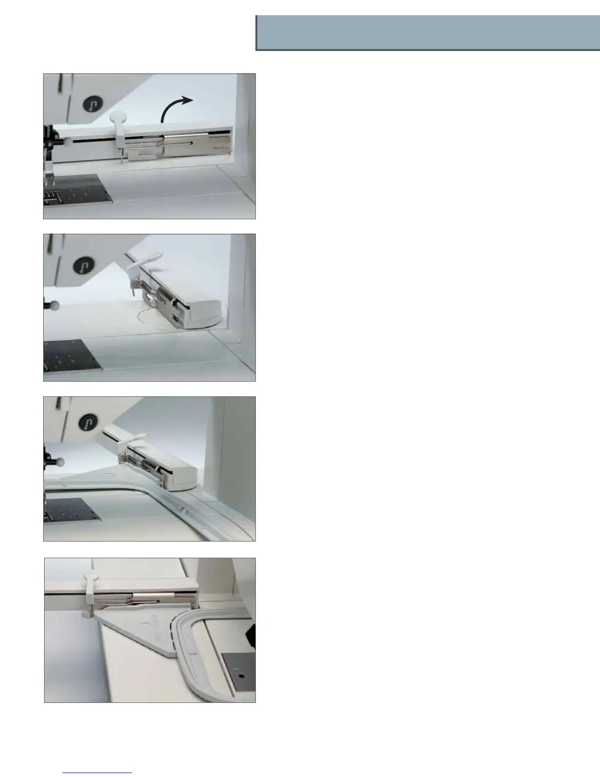 recessed grip (46) and rotate it 90 degrees. The embroidery arm