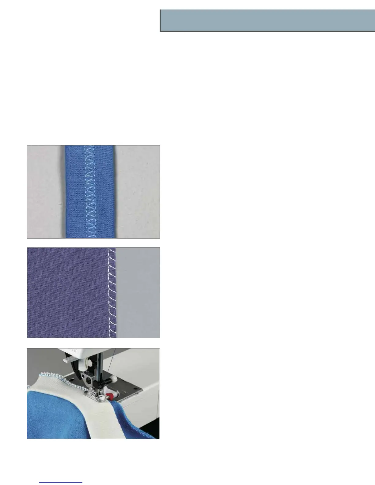 fabrics that do not fray excessively. Use presser foot no. 1 or 3.