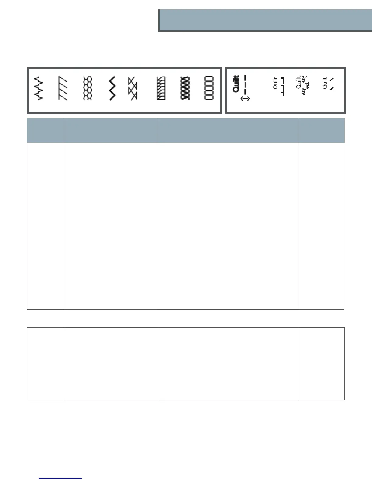 17 Stretch triple zigzag stitch Elastic stitch for decorative hems and topstitching. 6