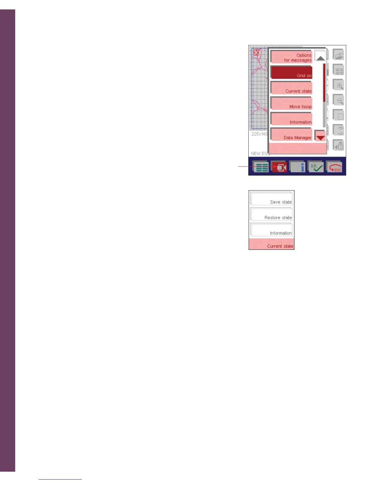 Touch the Save state icon to save the current position in the hoop under