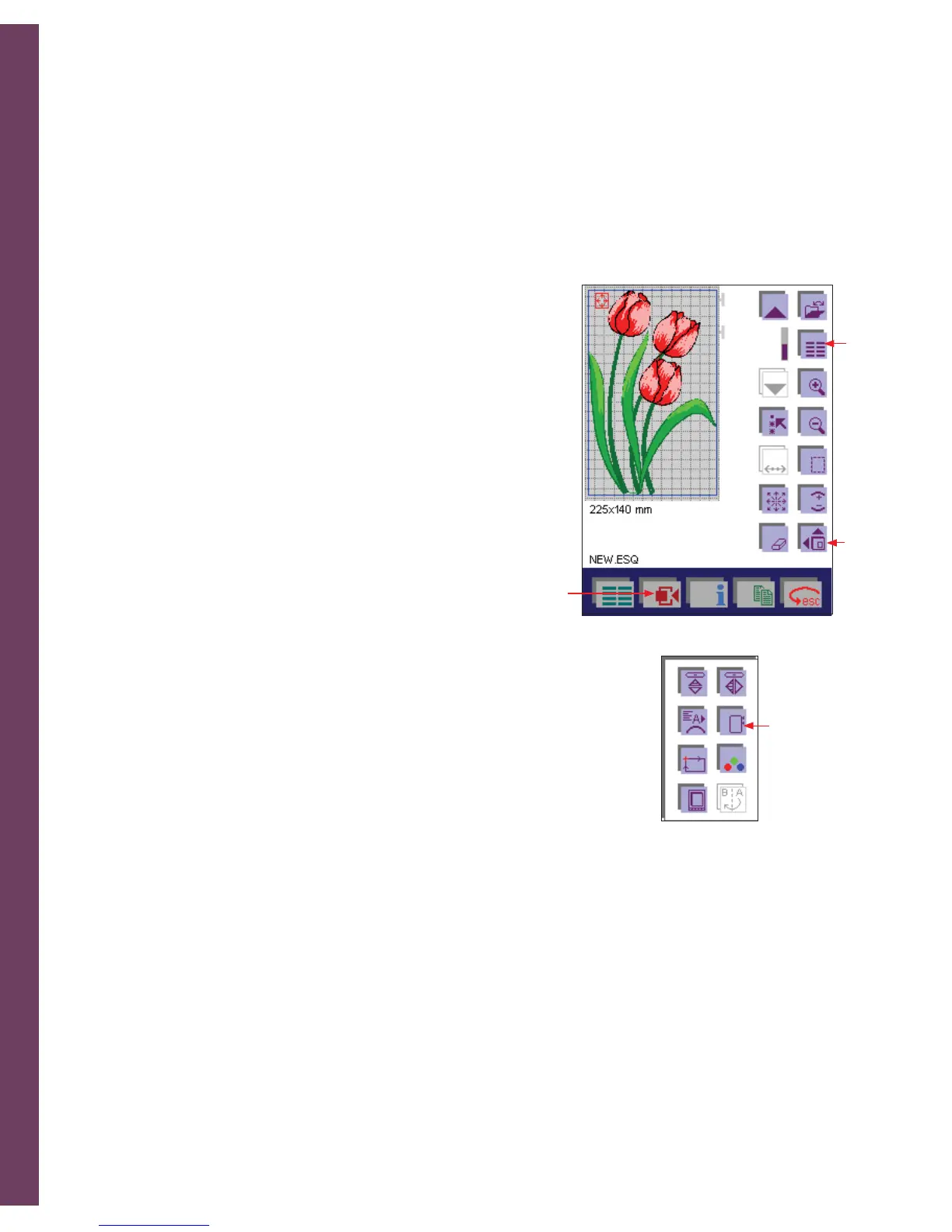 icon (B) and the Hoop selection icon (C) to change the hoop.
