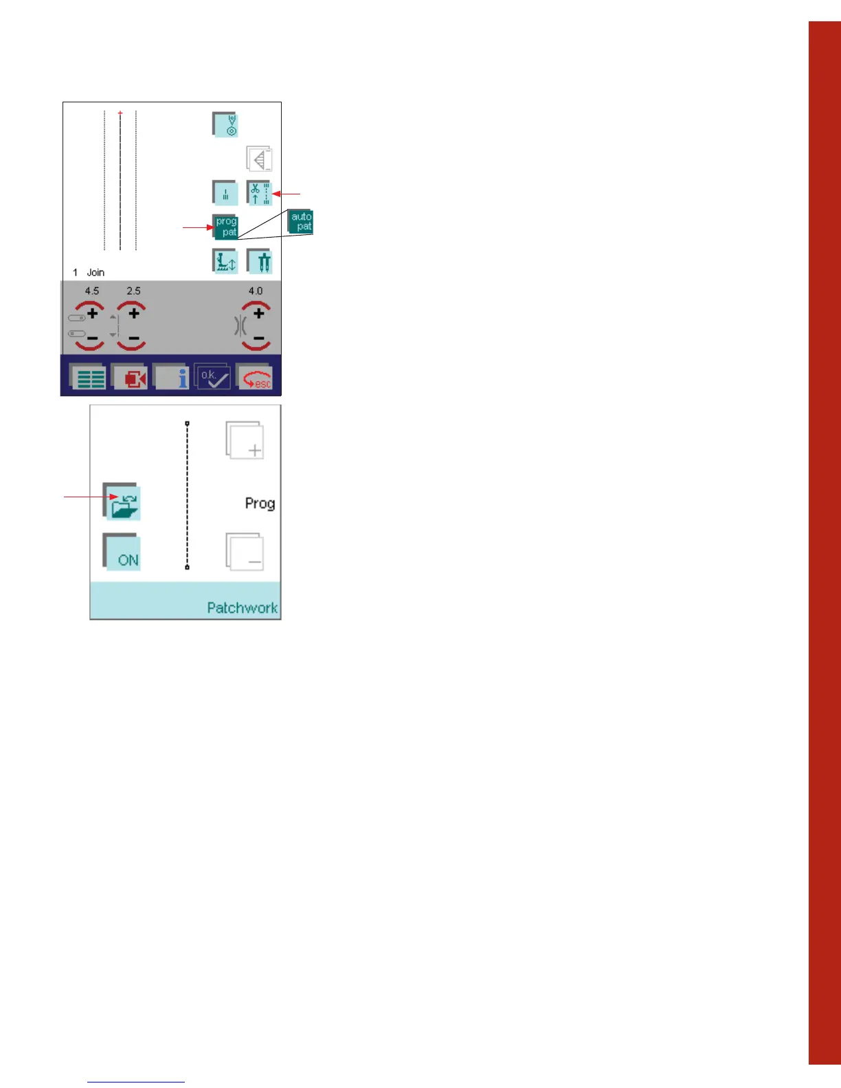 If you want to adjust the seam of your patchwork program, touch the