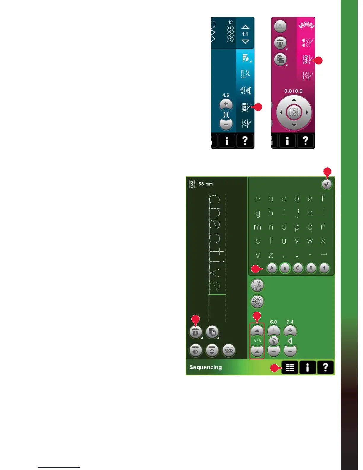 selected stitch or letter will be marked in green.