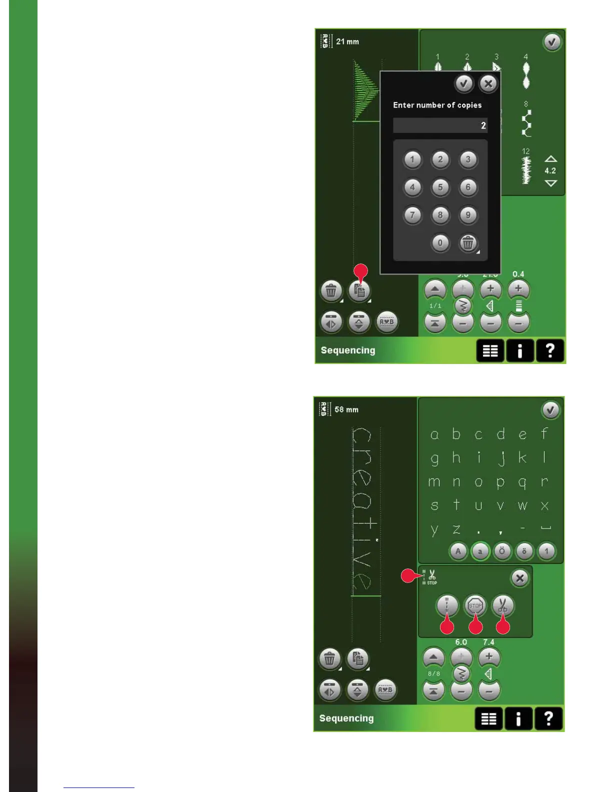 Note: If creating a sequence in embroidery mode, tie-offs