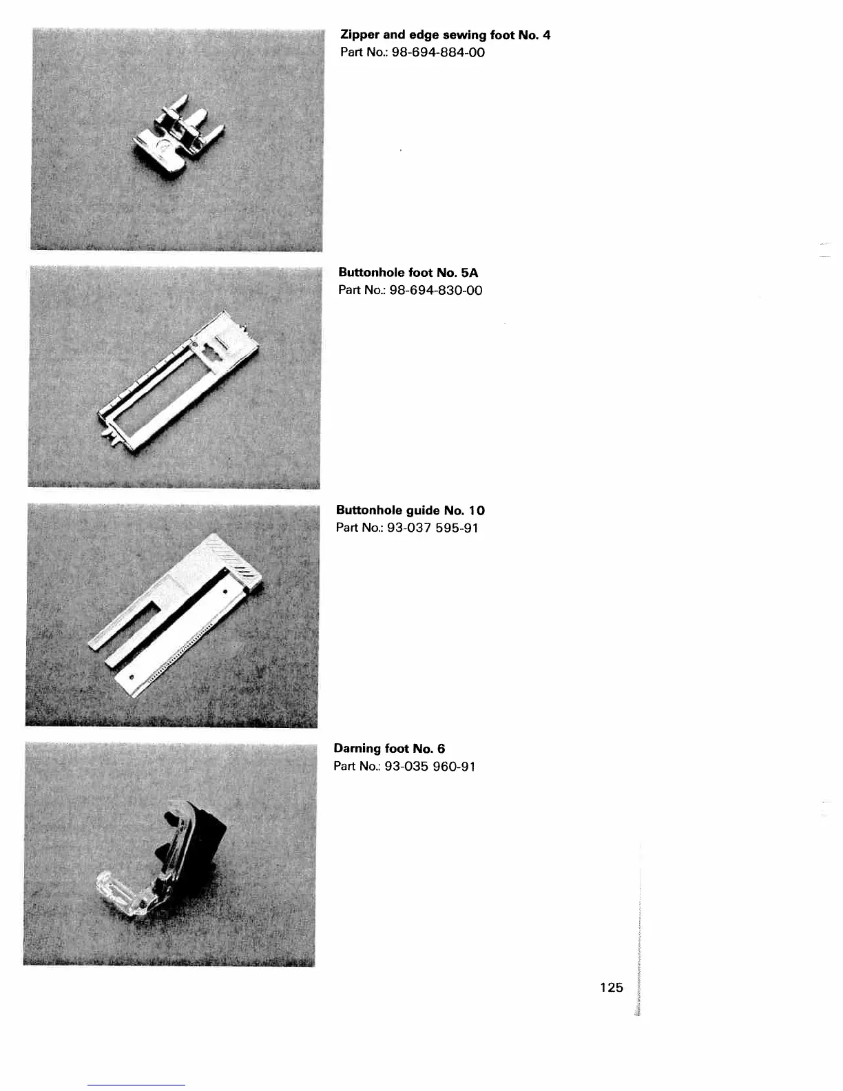 Pfaff Creative 7510 A - Specialty Sewing Feet; Buttonhole Foot No. 5 A; Darning Foot No. 6