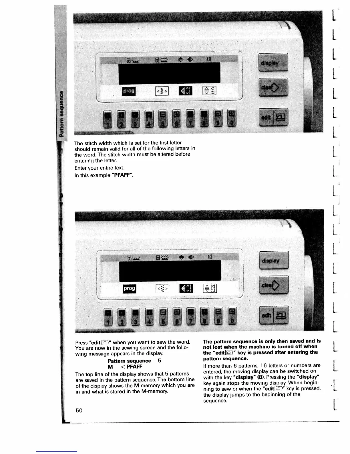Pfaff Creative 7510 A - Pattern Sequence Text Entry; Entering Text for Pattern Sequences