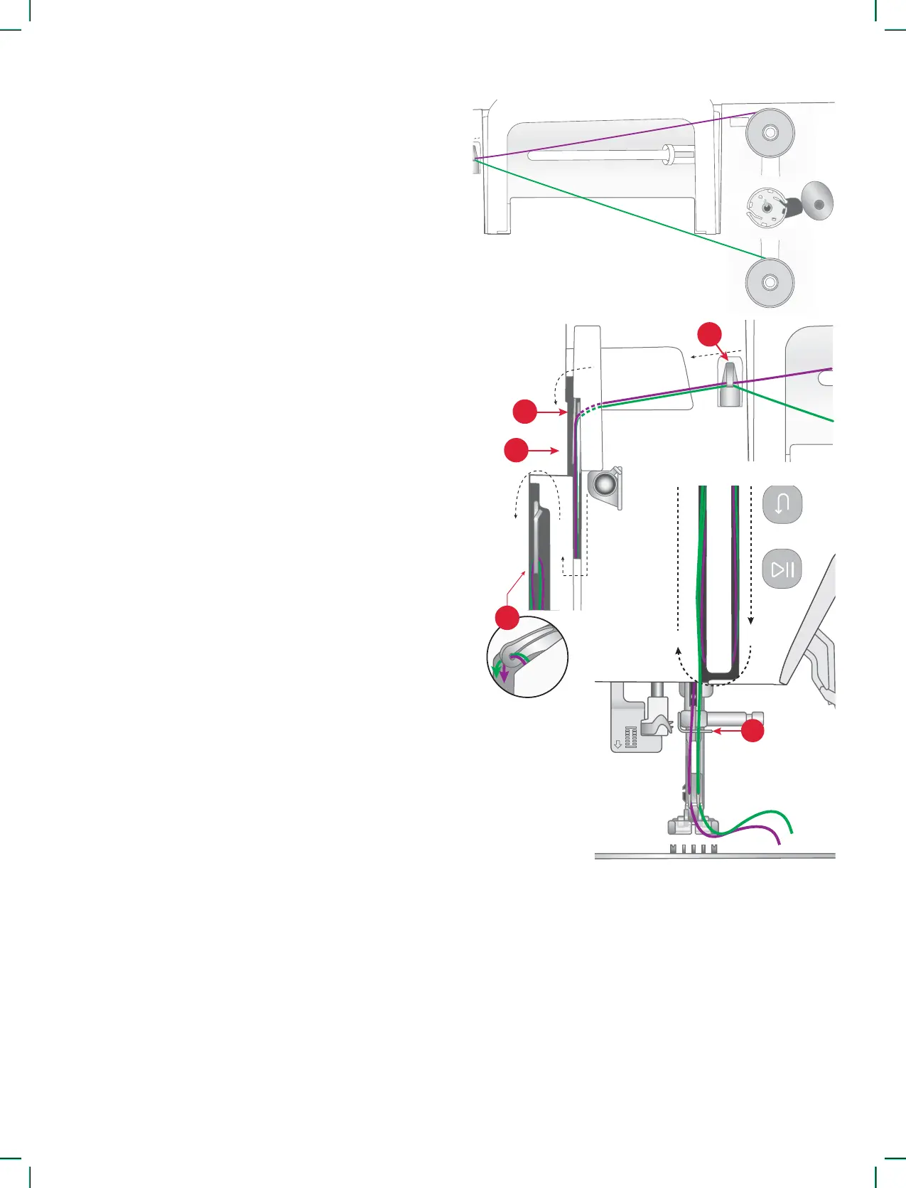 9. Thread the twin needle manually from front to