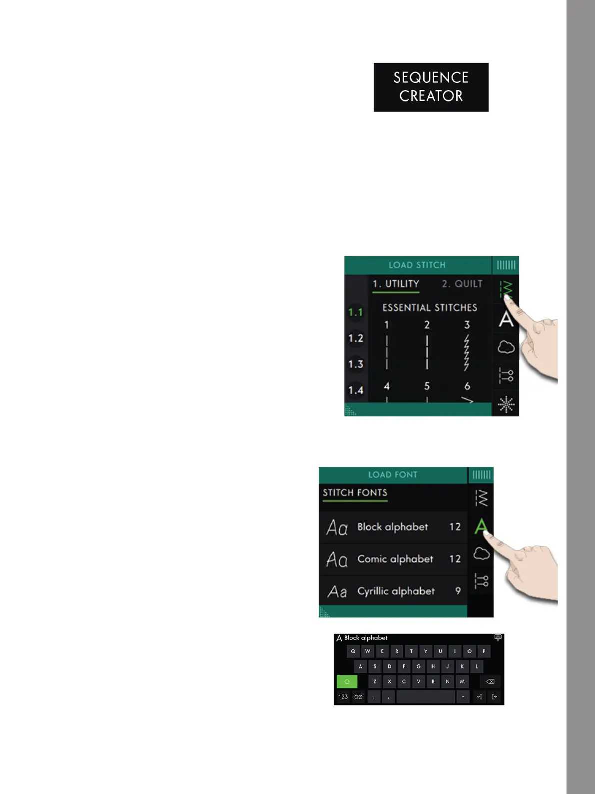 To start creating a sequence, select a desired stitch in the