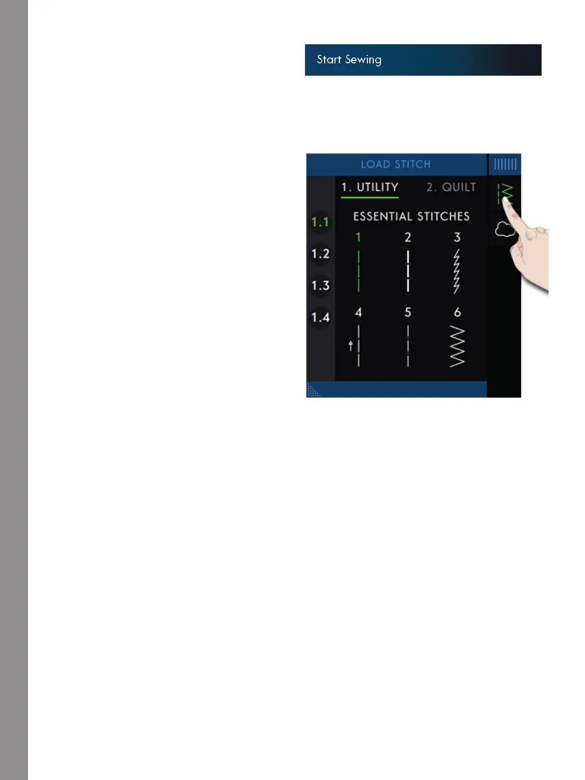 stitches. Touch a stitch to load it to Sewing Mode. The