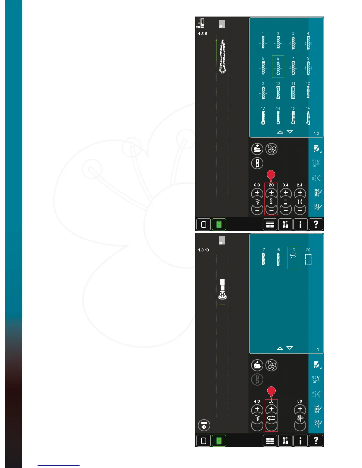 of stitch repetitions to be sewn, when sewing on a