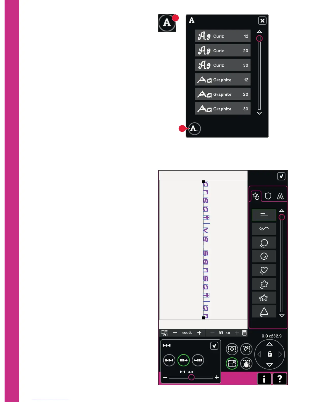 embroidery font editor window will change to the