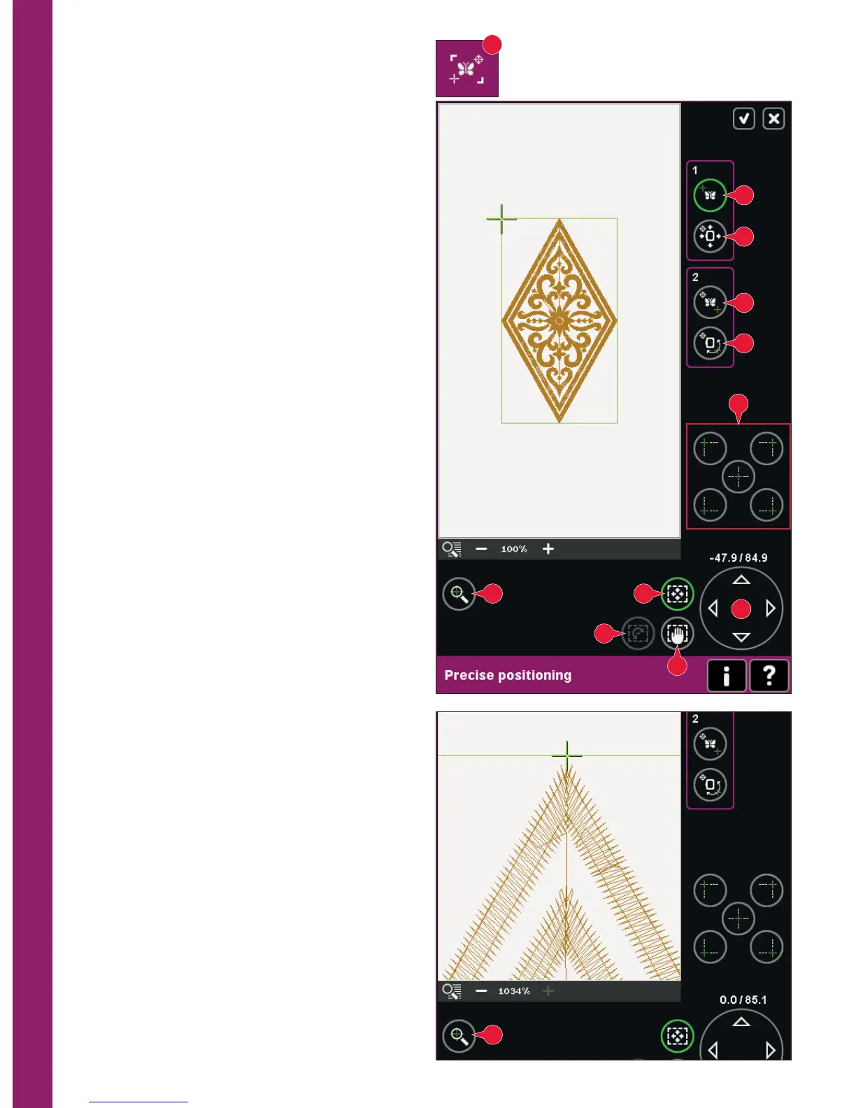 your embroidery. Use zoom to needle (see below)