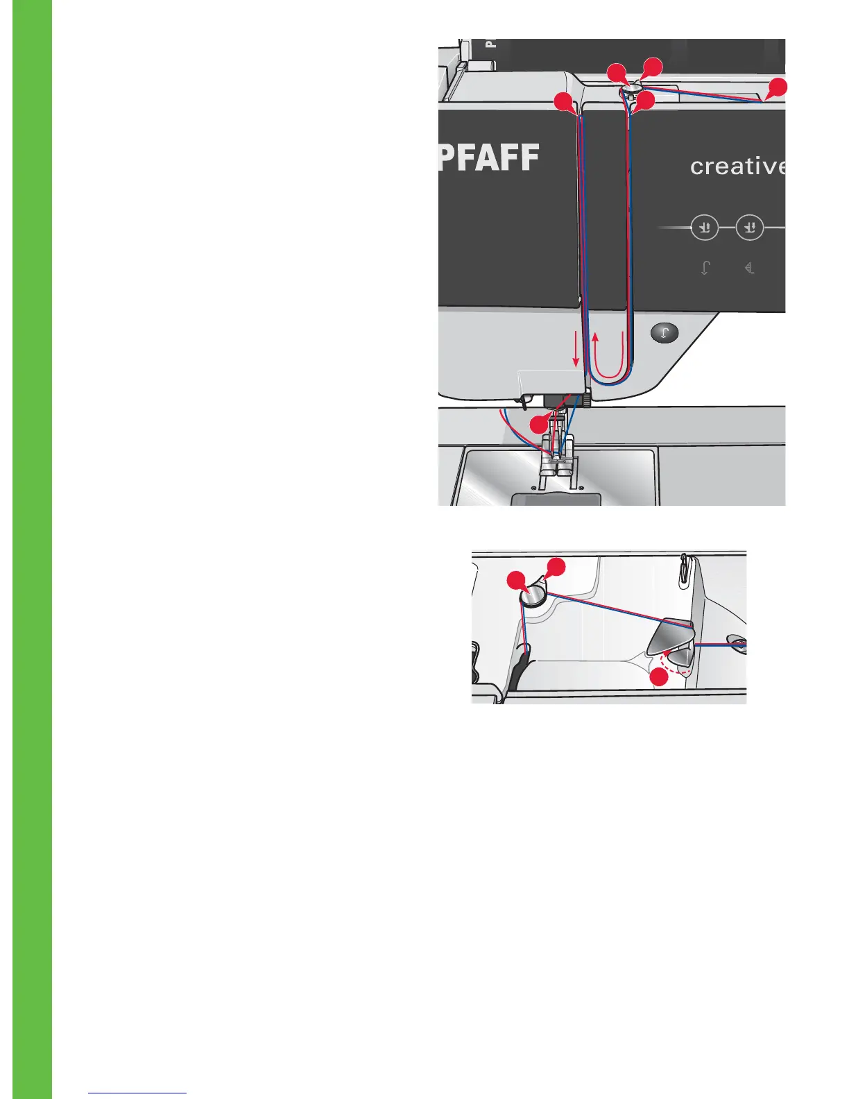 2. Pull the threads into the thread guide by pulling