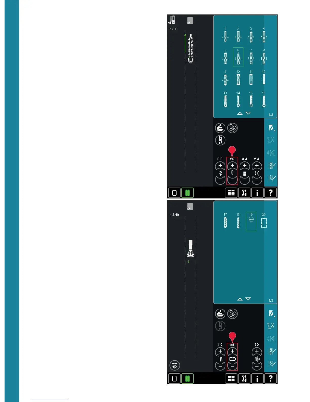 and - to decrease when sewing a buttonhole with