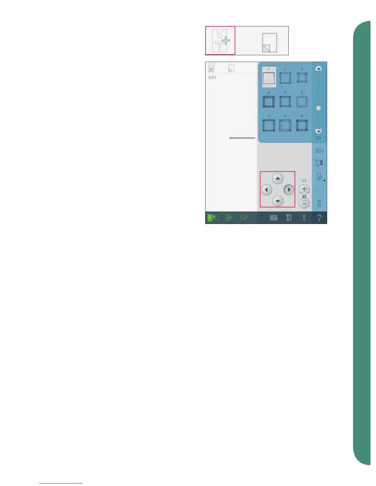 direction, use the four direction sewing icons (C).