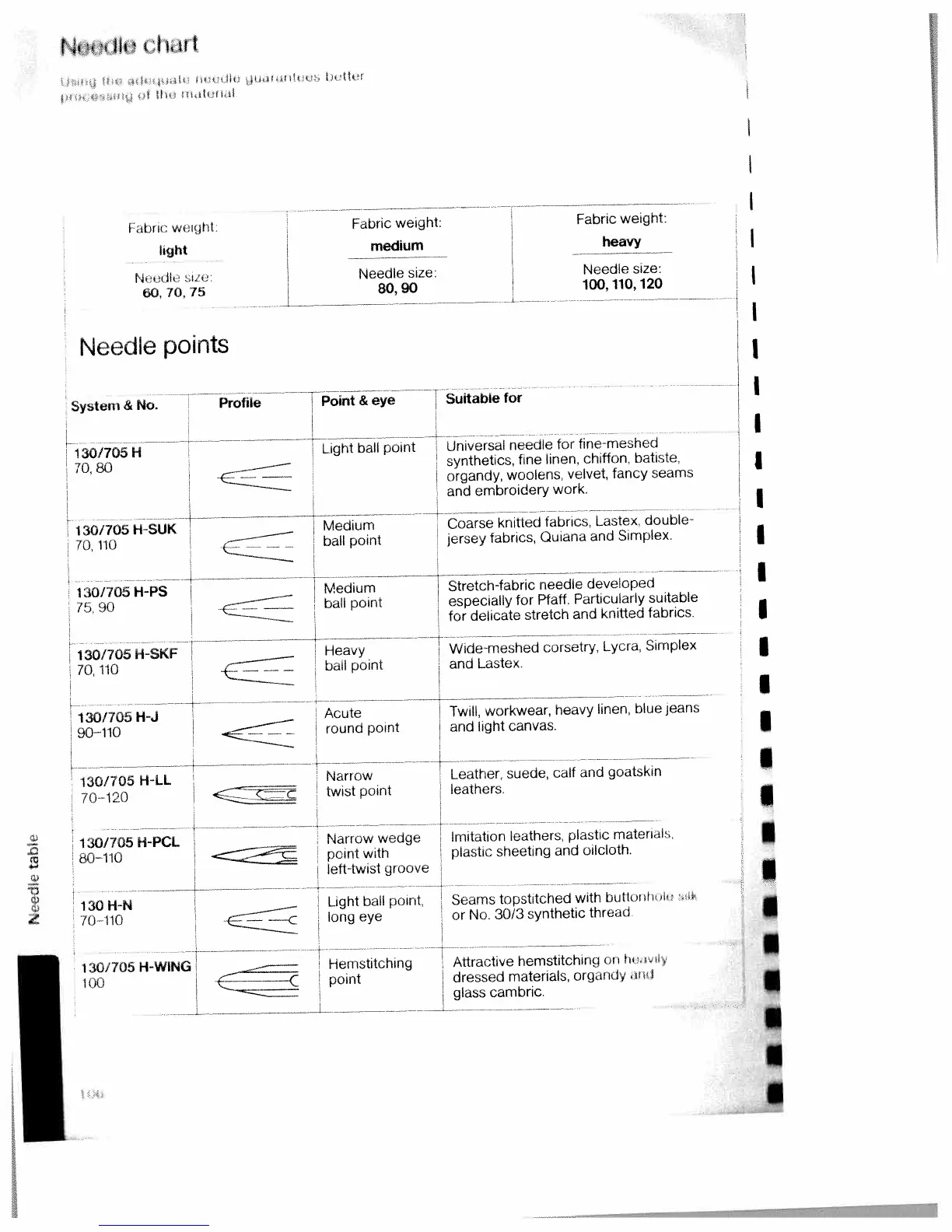 Pfaff electronic 6250 - Needle Chart; Needle Points