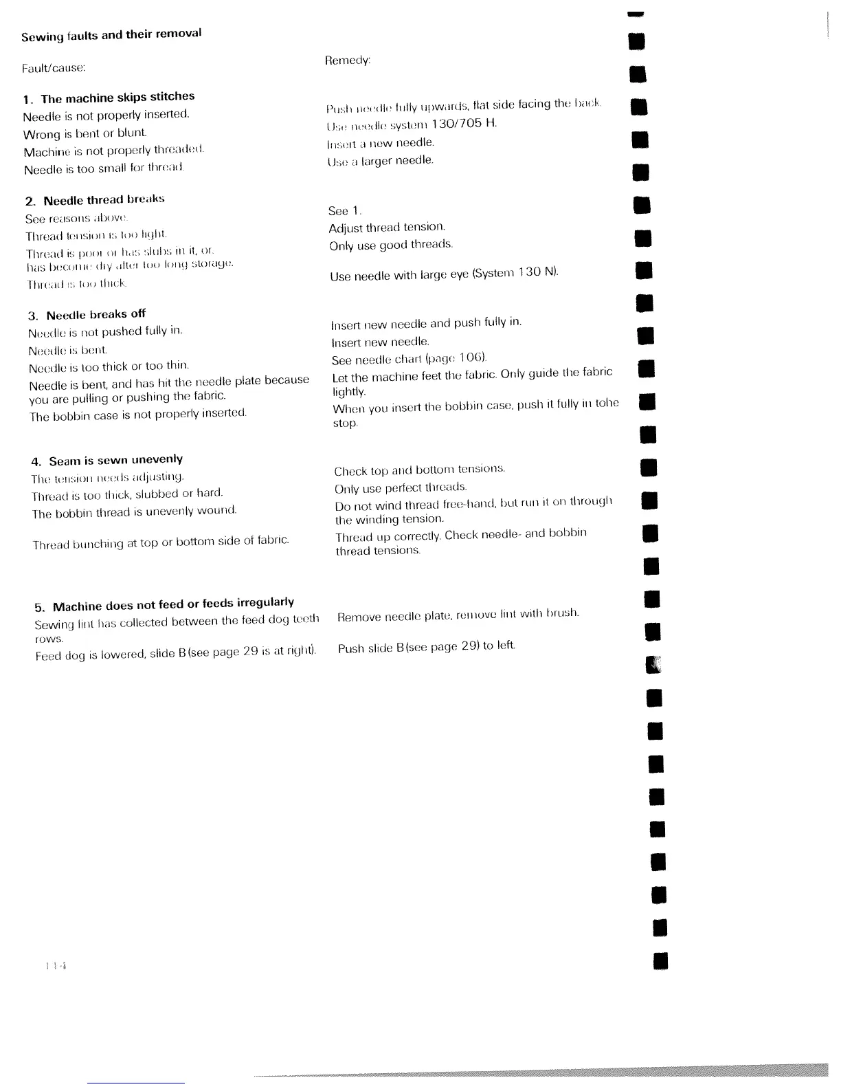 Pfaff electronic 6250 - Sewing Faults and Their Removal; The Machine Skips Stitches; Needle Thread Breaks; Needle Breaks off