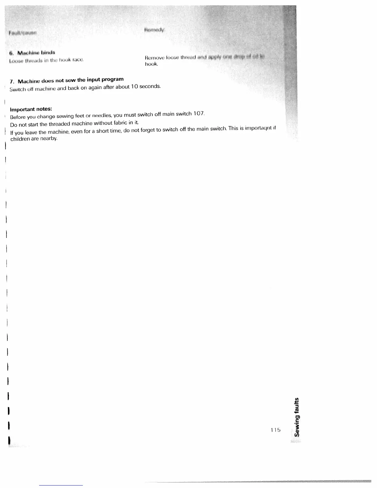 Pfaff electronic 6250 - Machine Binds; Machine Does Not Sew the Input Program