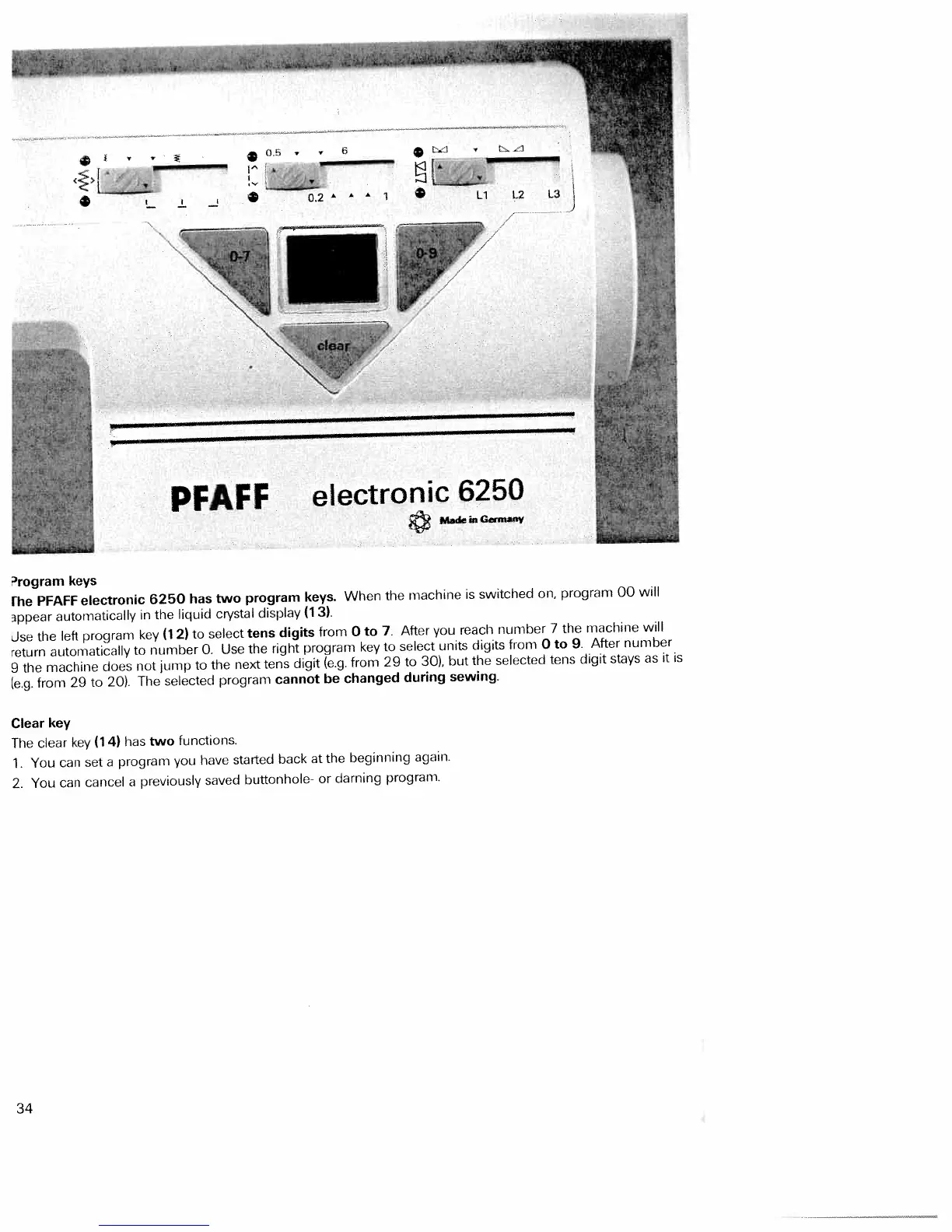 Pfaff electronic 6250 - Program Keys; Clear Key