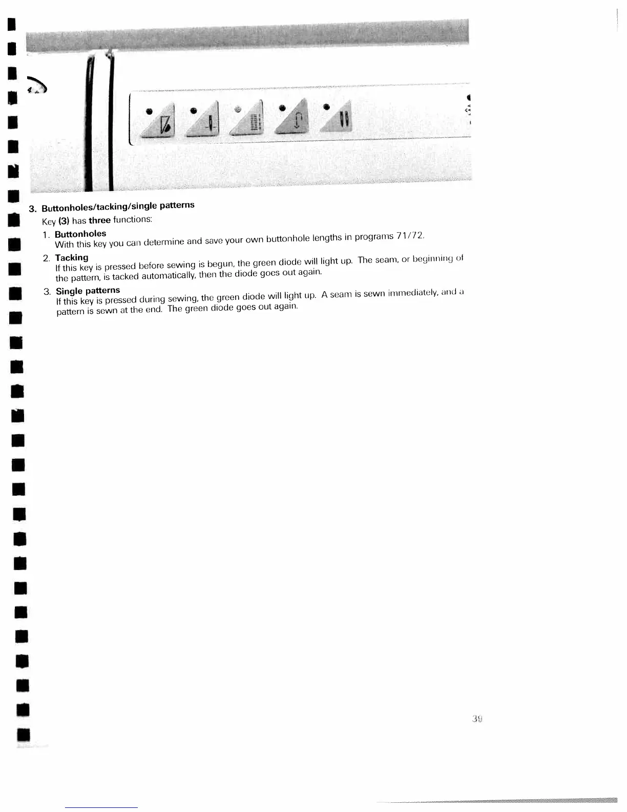 Pfaff electronic 6250 - Buttonholes; Tacking; Single Patterns
