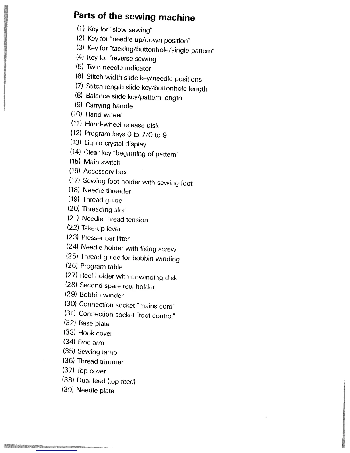 Pfaff electronic 6250 - Parts of the Sewing Machine