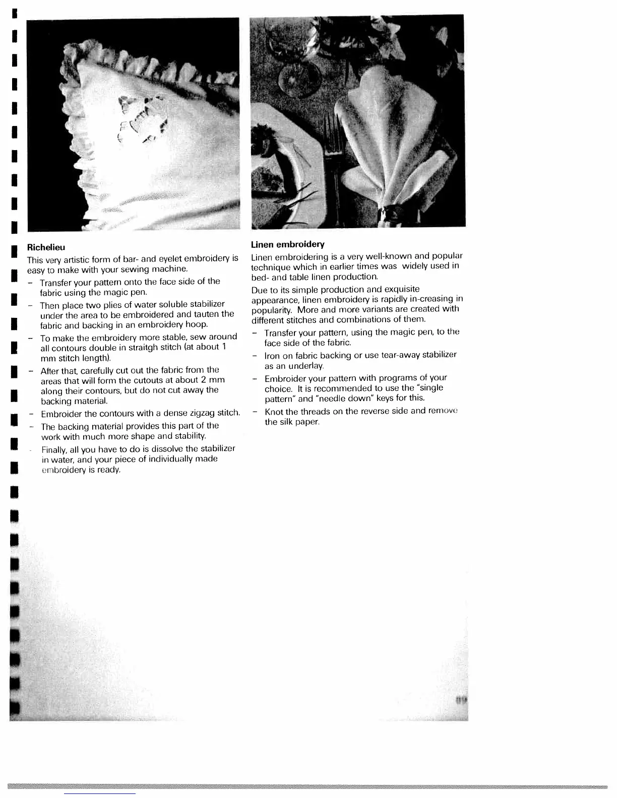 Pfaff electronic 6250 - Richelieu; Linen Embroidery