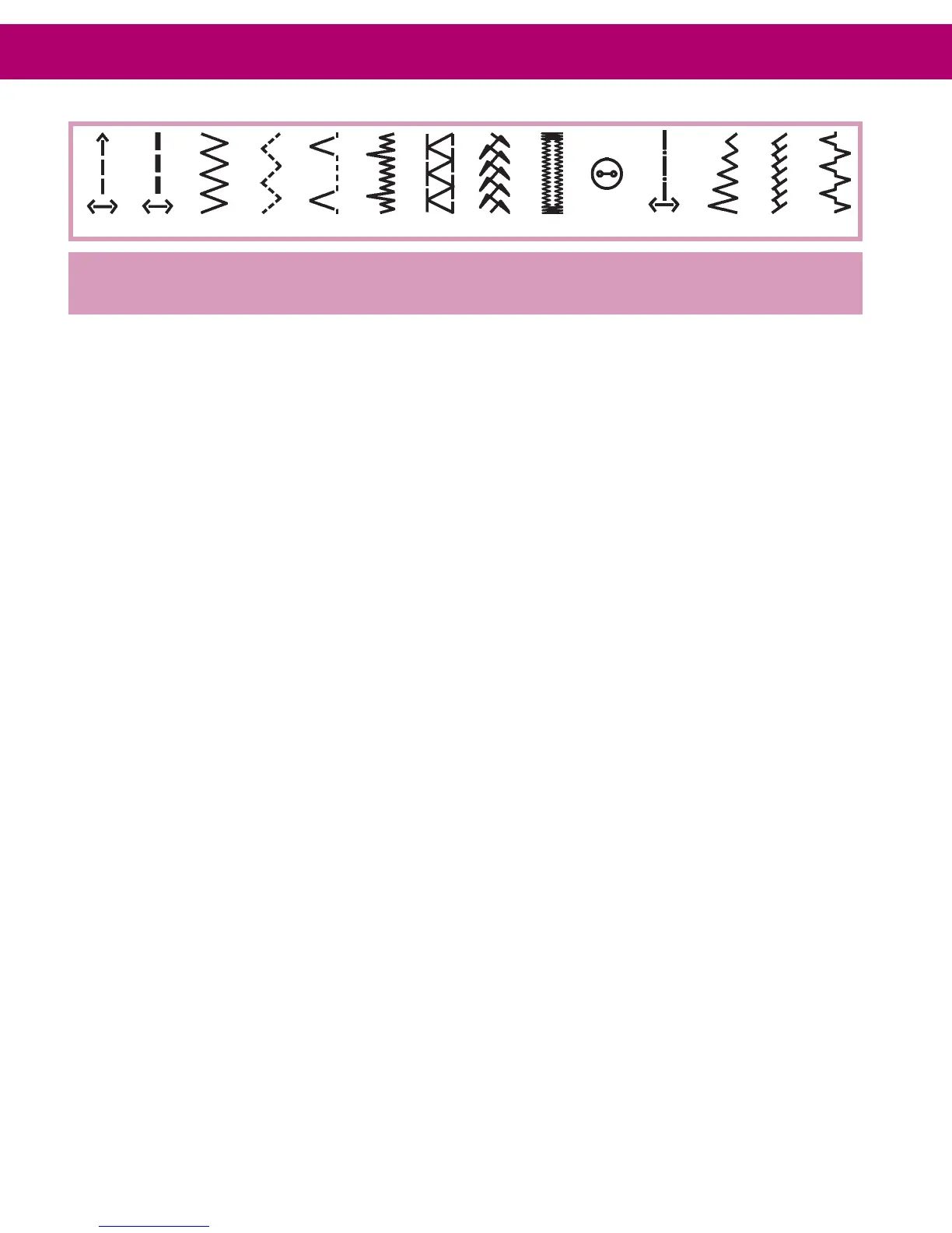 1 Straight stitch For seaming and topstitching up to 6 mm. 19 needle positions