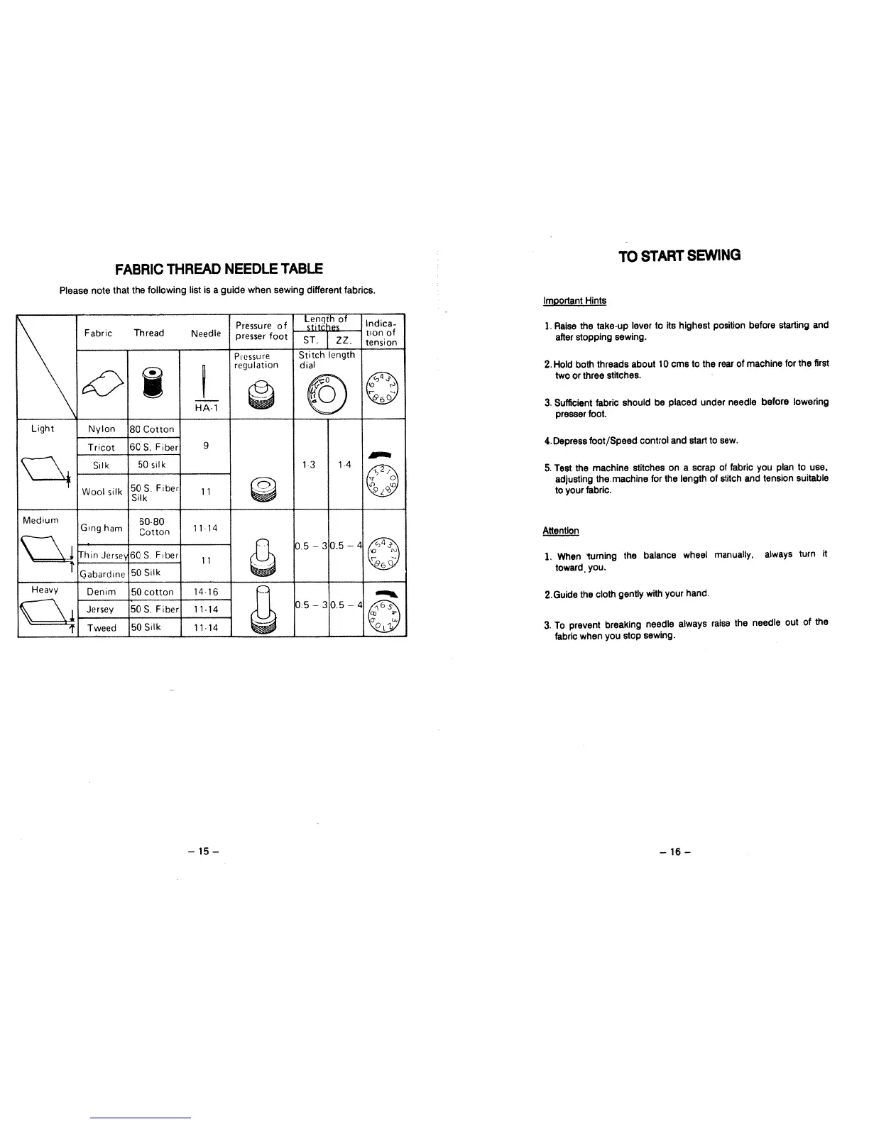Pfaff Hobby 1010 - Fabric Thread Needle Table; To Start Sewing