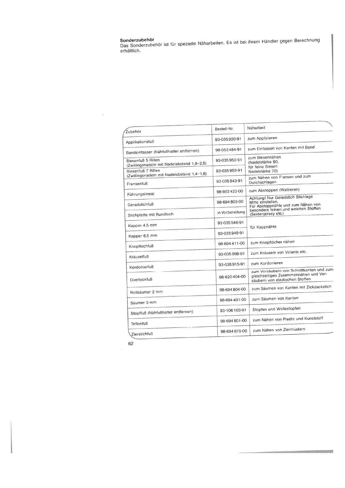 Pfaff Hobby 301 - Special Accessories