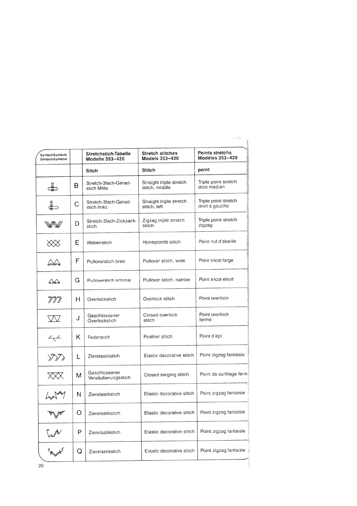 Stretchstich-Tabelle