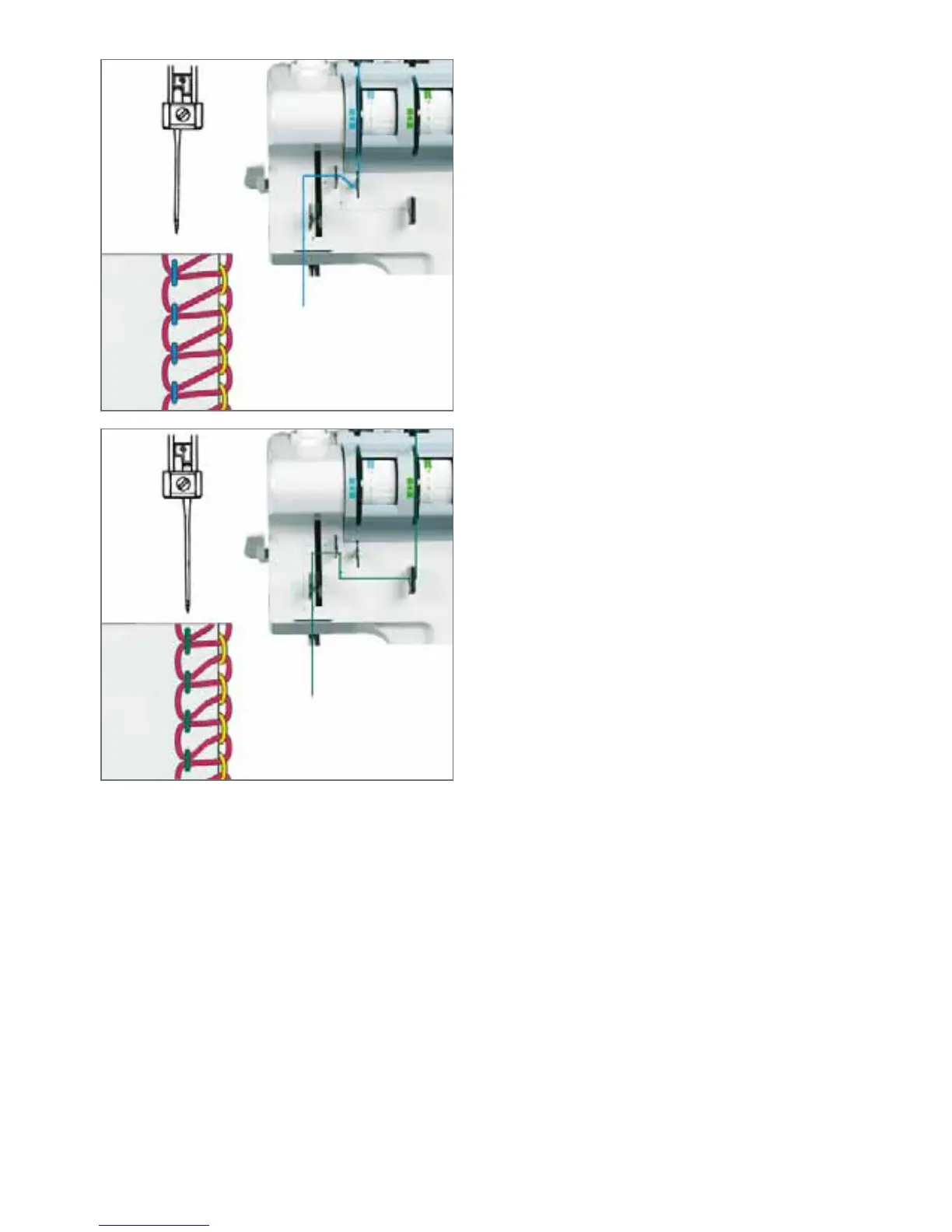 needle) and lower looper thread.