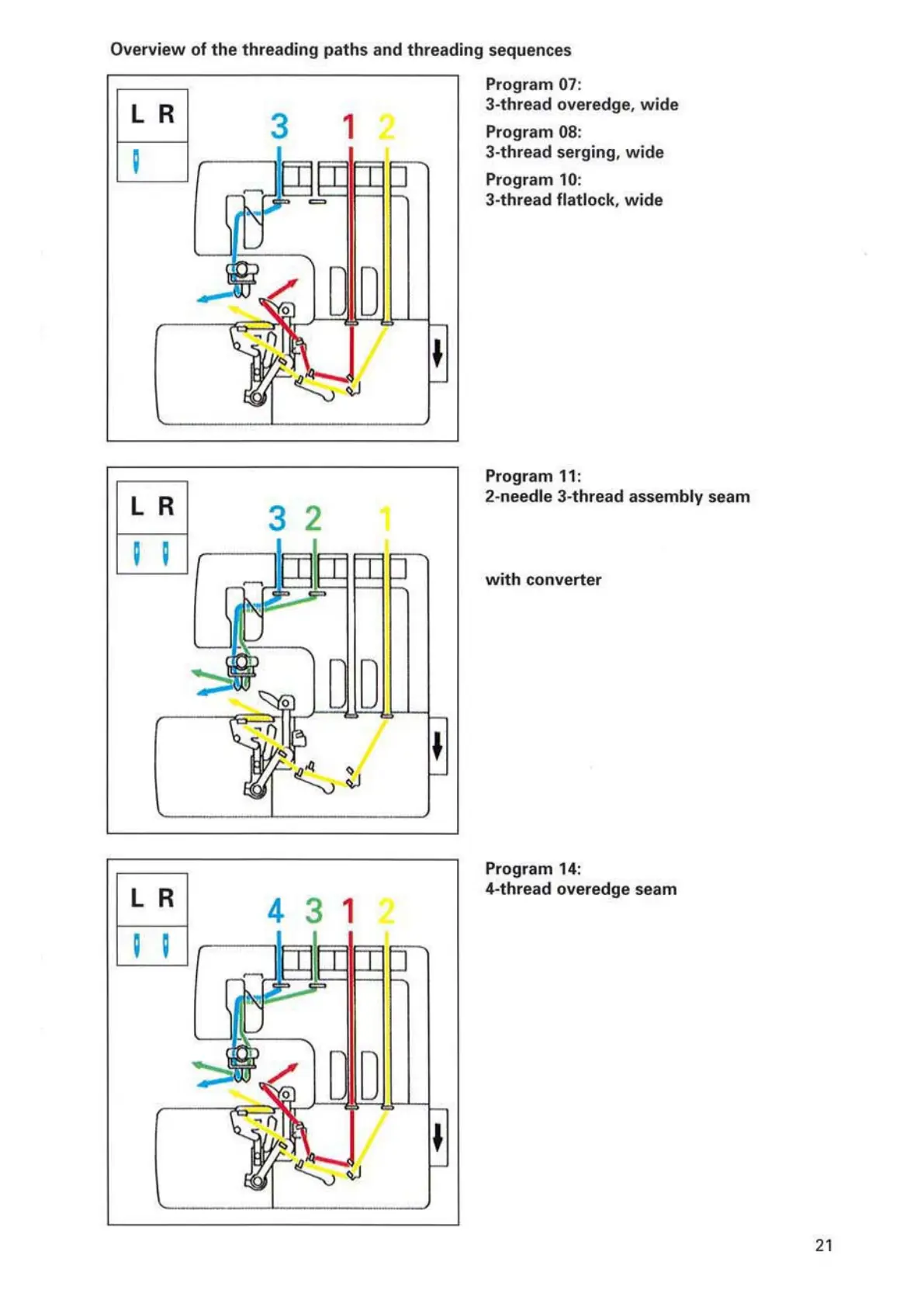 Pfaff hobbylock 4842 - Threading Paths Overview (Continued); 3;4-Thread Programs Paths; 2-Needle 3-Thread Programs Paths