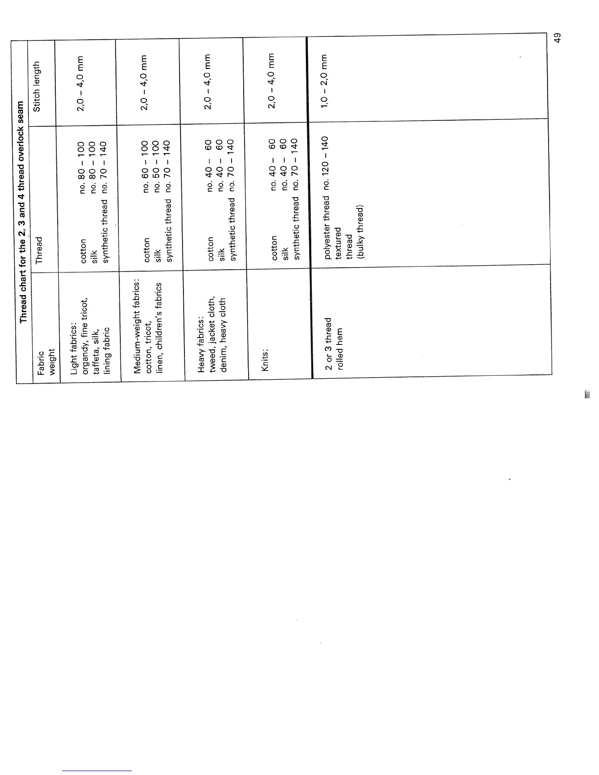Pfaff Hobbylock 4860 - Thread and Program Charts
