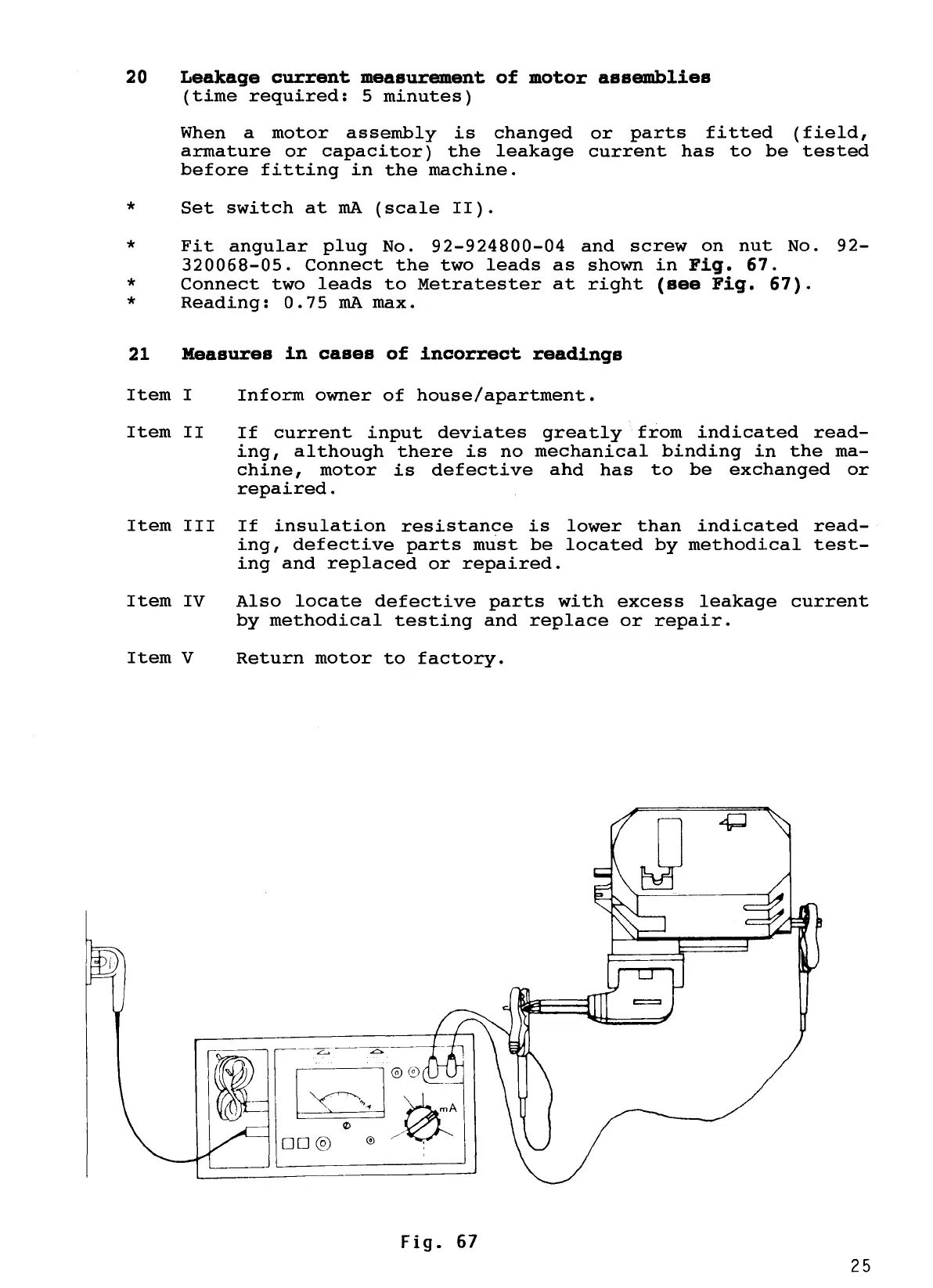 Pfaff hobbylock 783 - Leakage Current Measurement of Motor Assemblies; Measures in Cases of Incorrect Readings
