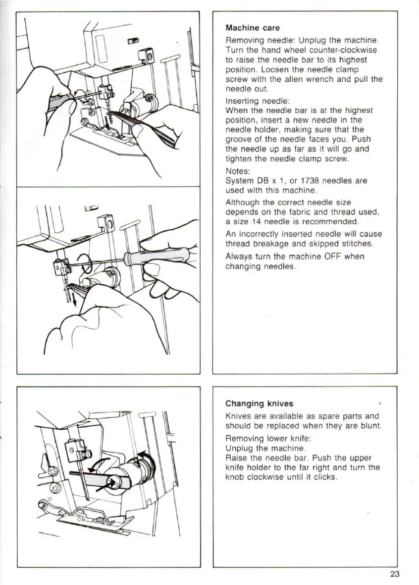 Removing needle: Unplug the machine.