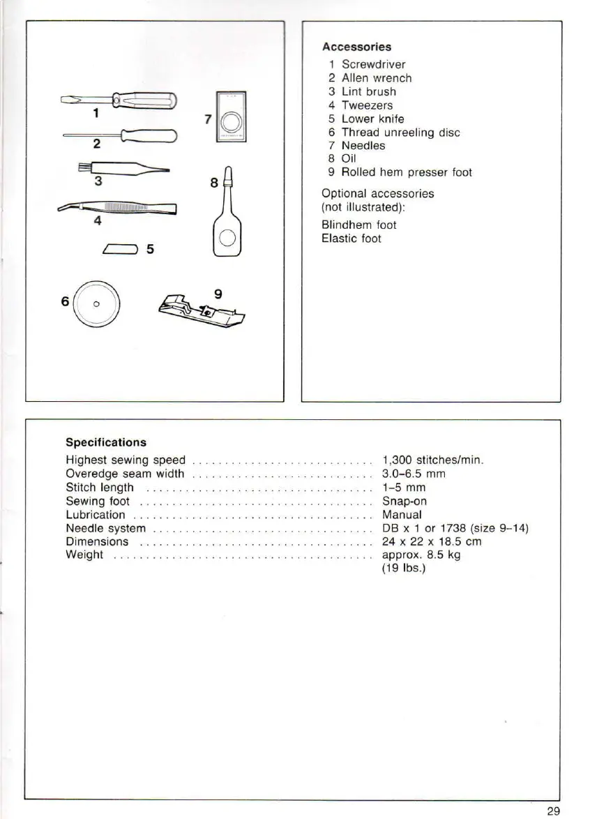 Overedge seam width . . . . . . . . . . . . . . . . . . . . . . . . . . . .