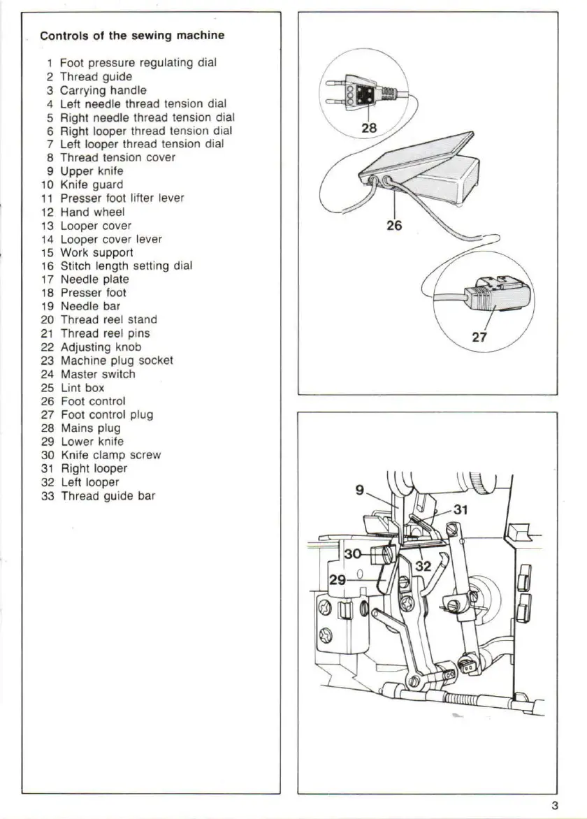 7 Left looper thread tension dial
