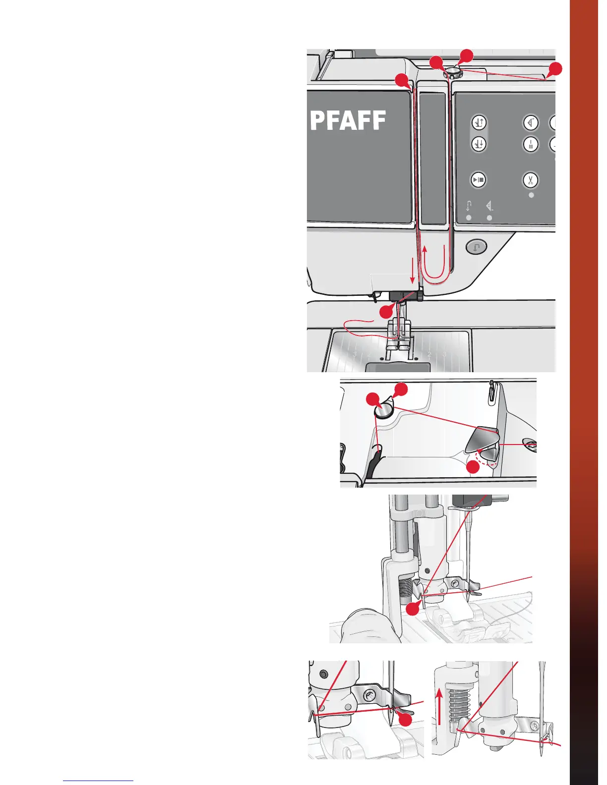 4. Bring the thread from the right into the take-up