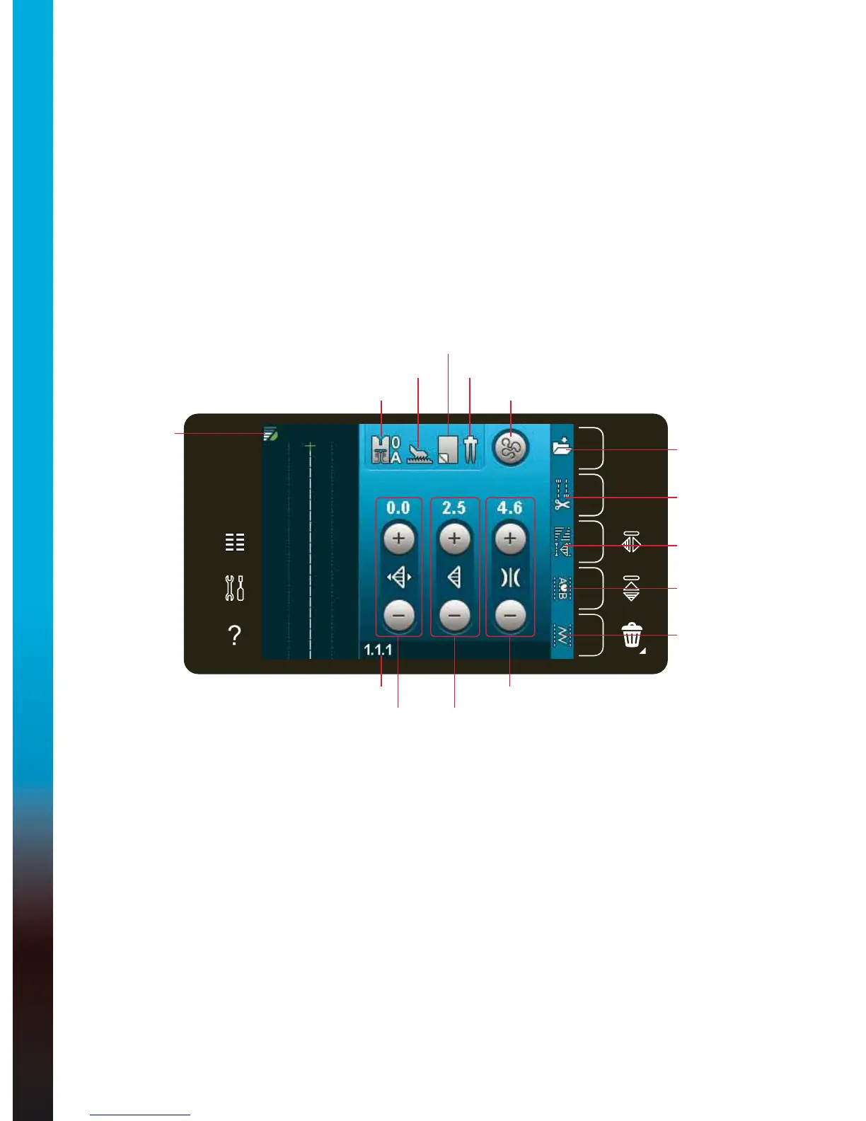 In sewing mode you can select stitches, adjust and sew them. The selected stitch is shown in actual size in