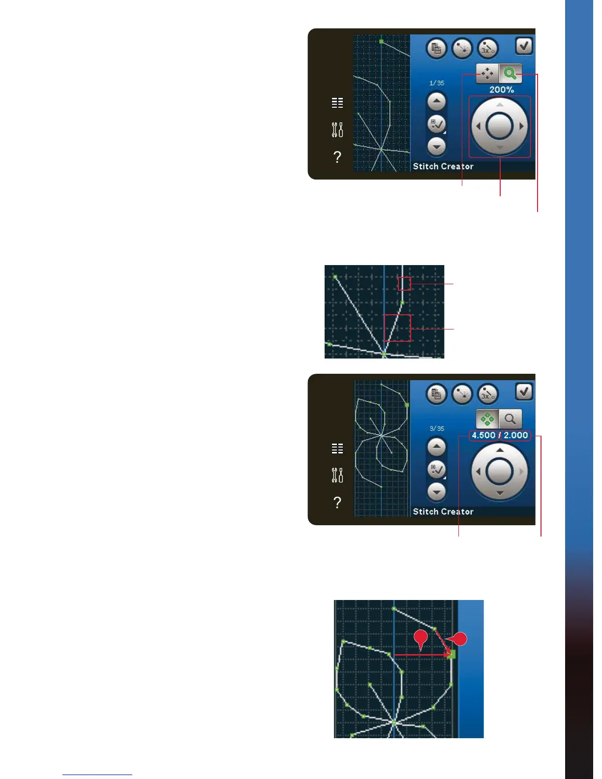 the fabric. Use the arrows in the wheel to zoom in or